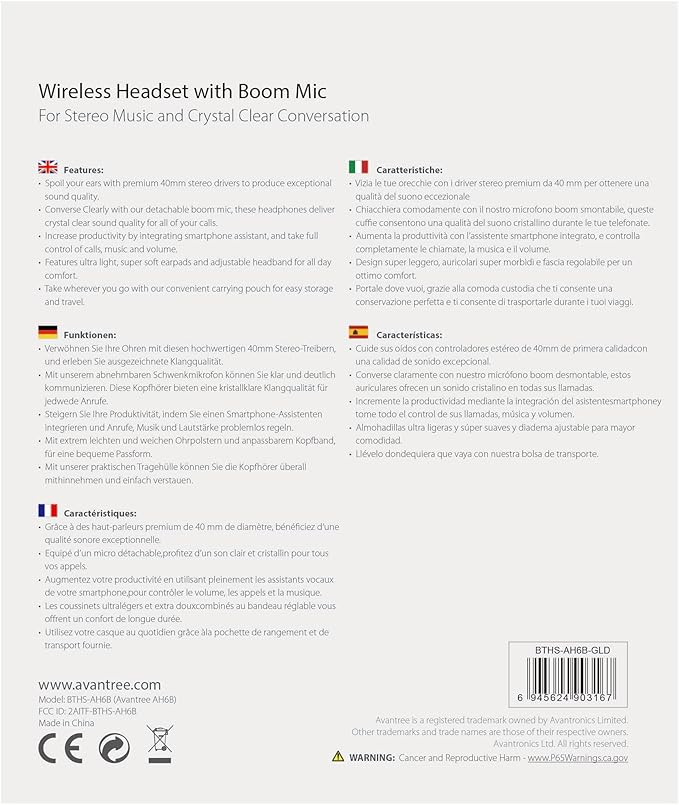 Avantree AH6B - Bluetooth On Ear Headphones with Detachable Mic for Work in Office or at Home, Premium Sound, Soft Padding, Lightweight, Wireless & Wired Headset for Phone PC Laptop, Champaign Gold