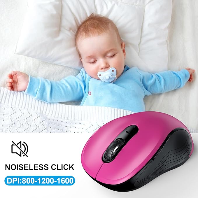- ▶[3 DPI LEVELS & 6 BUTTONS] 3 Adjustable DPI Settings, 800, 1200 and 1600. This computer mouse gives precision tracking on just about any surface, with a DPI button helping to change the sensitivity on the fly. Extra 2 Side Buttons ideal for both work and gaming. Plug and play directly with A RECEIVER STORED IN THE BATTERY COMPARTMENT, no any driver needed!