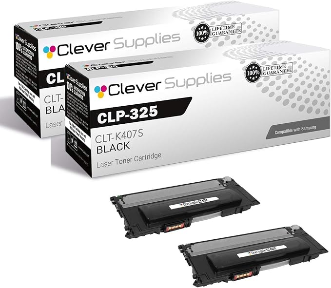 CS Replacement Toner Cartridge Compatible with Samsung CLP-325 CLT-K407S Black CLP Series CLP-320 CLP-320N CLP-321N Toner Cartridge 2 Black Set