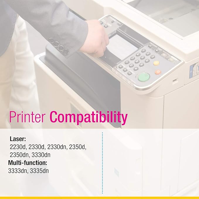 - Compatible with Dell Printers: Laser 2230d, 2330d, 2330dn, 2350d, 2350dn, 3330dn, Multi-Function 3333dn, 3335dn