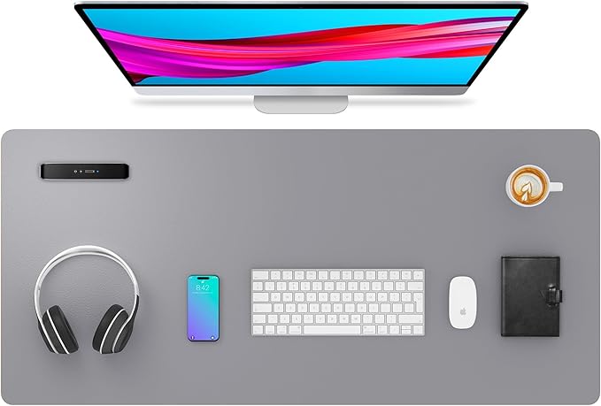 Aothia Leather Desk Pad Protector, Mouse Pad, Office Desk Mat, Non-Slip PU Leather Desk Blotter, Laptop Desk Pad, Waterproof Desk Writing Pad for Office and Home (36" x 17", Light Grey)