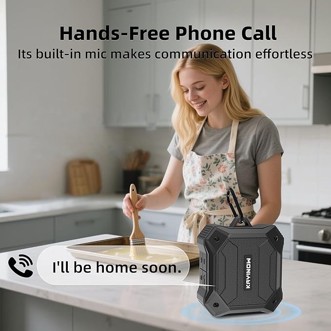 - [Exceptional Sound Quality+Hands-Free Calling]: This outstanding mini Bluetooth speaker features a high-performance diaphragm, delivering powerful 5W bass and crystal-clear sound quality. Pair two speakers (sold separately) to activate TWS mode and enjoy immersive 360° surround sound. The built-in microphone supports hands-free calling, allowing you to chat freely without picking up your phone. Even in noisy outside environments or the bathroom, you won't miss important calls