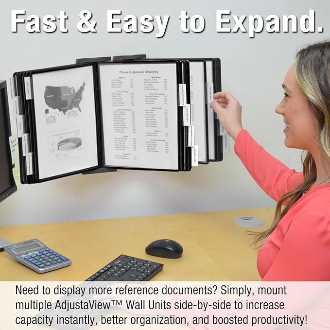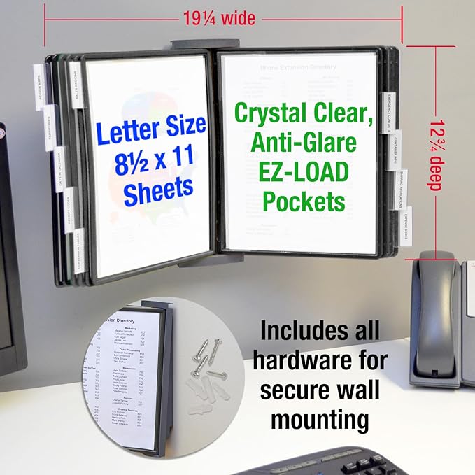 - FIND INFORMATION FAST - Provides EASY access to information you need every day - 10 pockets display up to 20 letter-size sheets; for additional capacity, simply mount multiple units side by side. This unit is designed for WALL MOUNT applications only. Please choose model B079M227PX or B08289LPJS if you need a desk model.