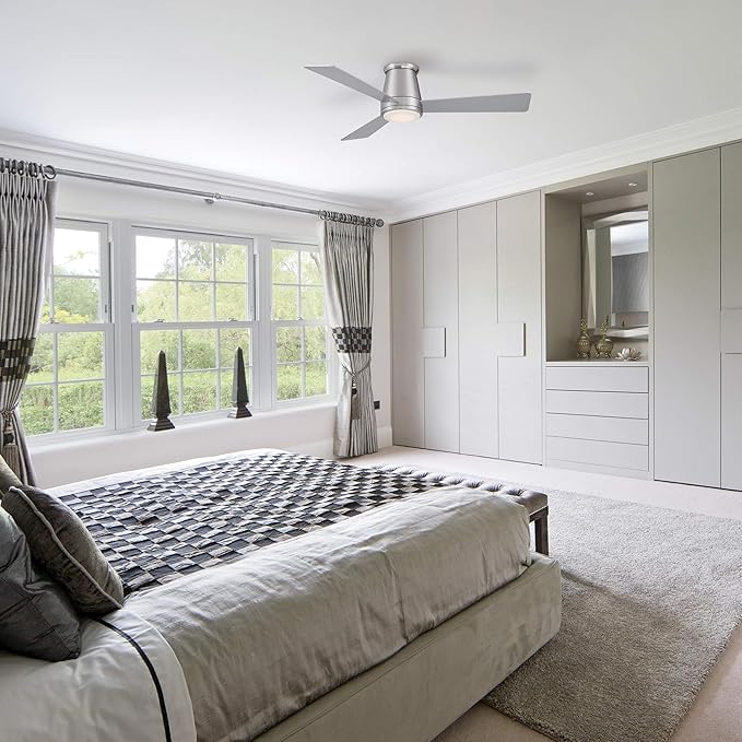 WAC Smart Fans Hug Indoor and Outdoor 3-Blade Flush Mount Smart Home Ceiling Fan 52in Brushed Nickel with 3000K LED Light Kit and Remote Control works with Alexa and iOS or Android App