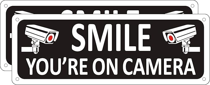 - 【LONG OUTDOOR LIFE】This smile you're on camera sign is printed with long lasting ink and special UV coating to protect it in harsh weather. This manufacturing process makes this you're on camera sign/cctv sign fade-resistant and provides a long lifespan (lasts 6-8 years).