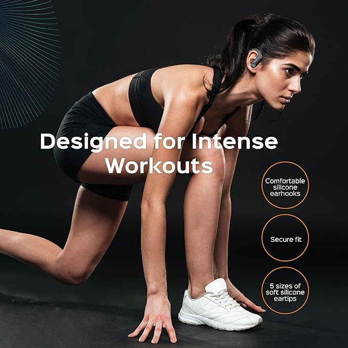 - In ear earbuds with ear hooks offer unmatched comfort for running earbuds and sport earbuds lovers, including 5 eartip sizes for any gym, travel, or outdoor activity.