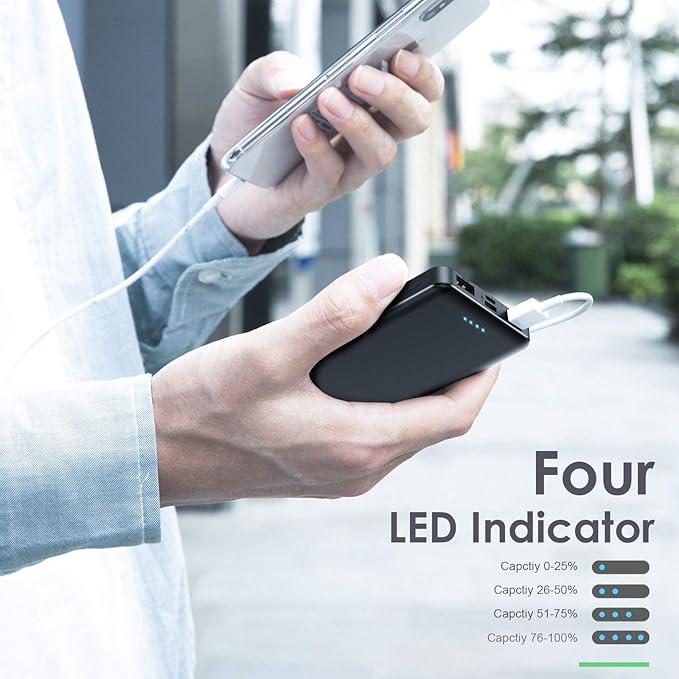 - 【4 LED Lights & Certified Safe 】 Four led lights show the current remaining power of the item(25%~50%~75%~100%), easily press the power button to turn it on or off. Built-in smart protection system, the USB battery pack ensures complete protection for you;