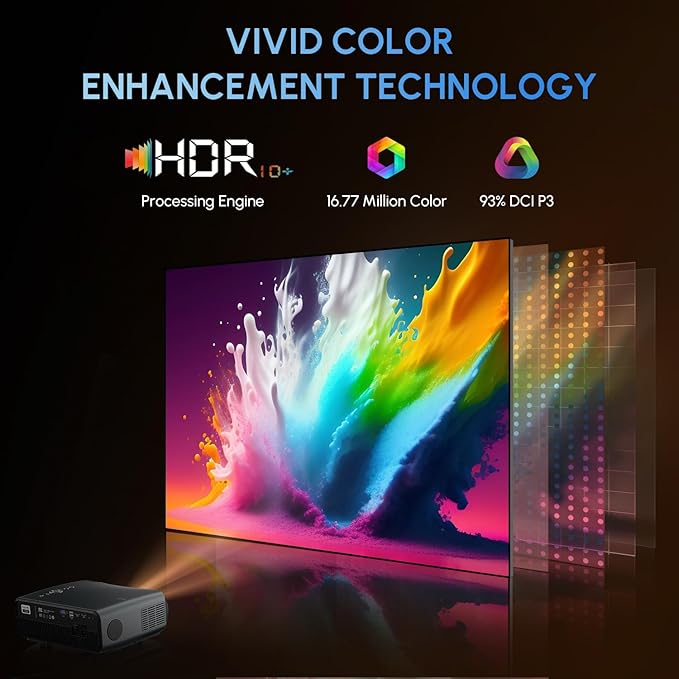 - STUNNING VISUALS & VERSATILE CONNECTIVITY: HDR10+ and DCI-P3 color technology provide vibrant colors and deep contrast. Multiple ports (2 HDMI, 2 USB, VGA, AV, Audio) allow easy connection to game consoles, laptops, and more—an all-in-one solution for movies, gaming, presentations, and beyond.