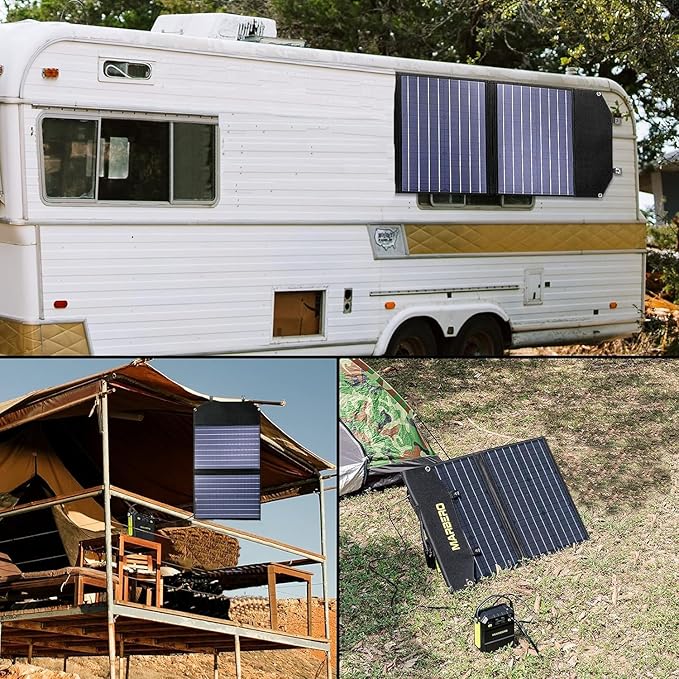 - HIGH EFFICIENCY: The MARBERO 100W folding solar panel is engineered with monocrystalline silicon and features high-efficiency solar arrays, achieving a conversion rate of up to 21.5-23.5% from solar power to electrical energy. Additionally, this camping solar panel is built with a smart IC chip that intelligently identifies your devices, maximizing charging speed while protecting them from overcharging, overcurrent, short circuits, overheating, and overload.