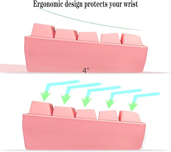 - Classic 60% Compact Design β This 60% gaming keyboard has a small size and it's good for Home and Office use, without Numpad, more practical for Gamers and Typist, give more space to your desktop. In addition, pink can always remind people of all kinds of beautiful things