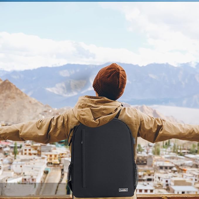- π [Good material,Good craftsmanship]:Cwatcun Zinc alloy zipper will not rust within 3 years and will not break within 5 years;Scratch-resistant and lightweight styling material protects your camera from damage and deformation;The stressed parts of the backpack are reinforced with nailing technology, with a load-bearing capacity of 50kg (110.2lb),which better protects your camera,lens,flash,tripod and other accessories.