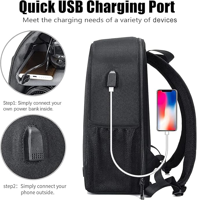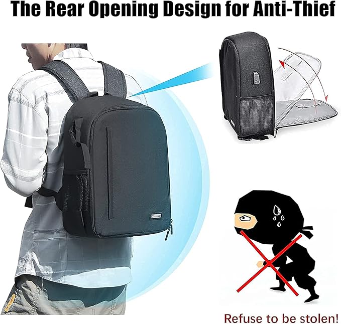 - π [Multi-Functional]: The back-opening design is anti-theft,and you can quickly take the camera without taking off the backpack when shooting; One 2.0 USB interface on the side, fast charging can be achieved after the internal mobile power supply is connected.