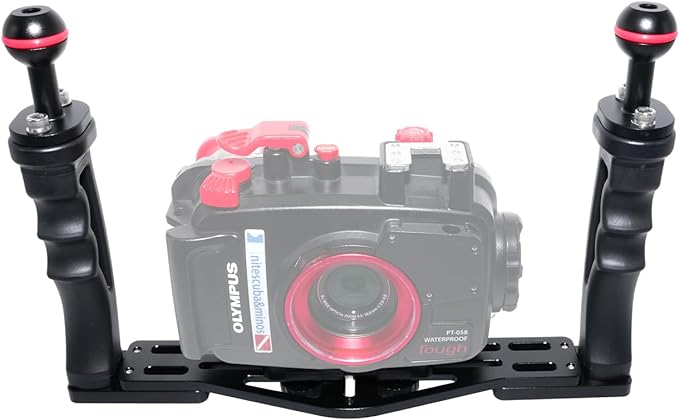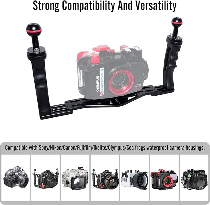 NS10 Underwater Camera Tray extendable Handle Grips Bracket for gopro,pt059,rx100 uw Camera housing Universal Soft Handle with Aluminum and Rubber Material (Black)