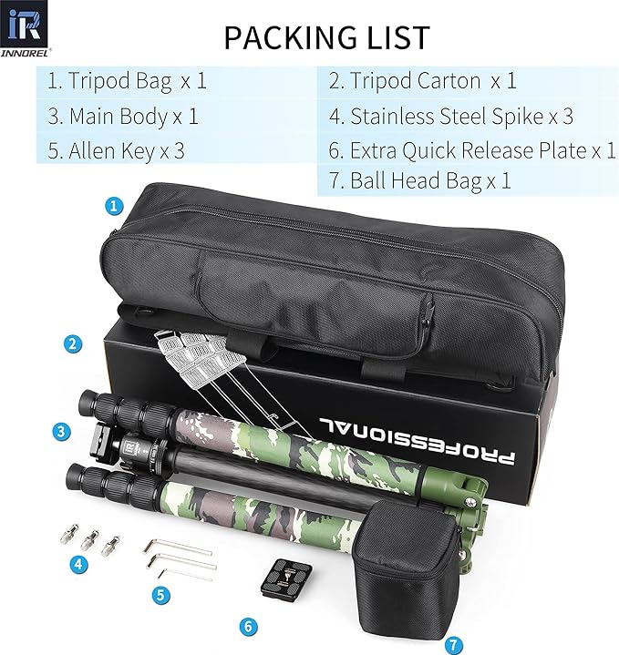 Carbon Fiber Tripod-INNOREL RT85CG Super Professional Stand with Low Gravity Center 360° Panoramic Ballhead and Green Camouflage Leg Covers for Digital DSLR Camera