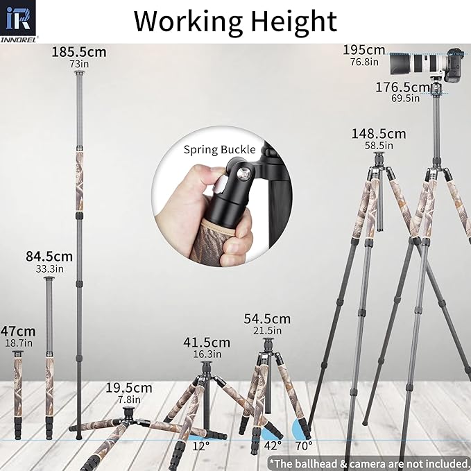 - 【ADJUSTABLE MULTIFUNCTIONS】 This tripod uses advanced twist lock system for fast and rock solid position setting, you can adjust three angles(70°/ 42°/ 12°) quickly. One of the legs can be removed then be a monopod or a alpenstock for hike.