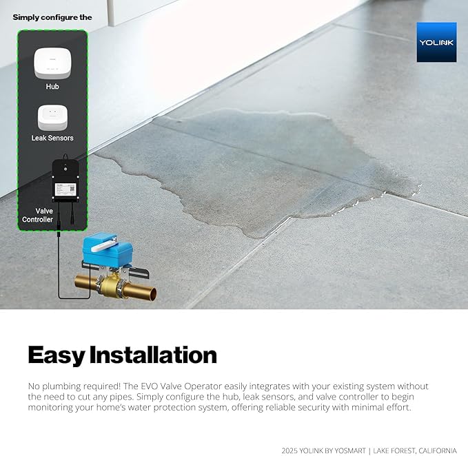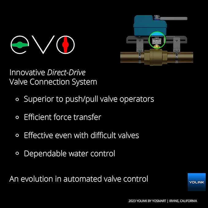 - Comprehensive Kit for Complete Leak Protection: This bundle includes 3 YoLink Water Leak Sensors, 1 Smart Valve Controller, 1 EVO Valve Manipulator/Operator, and 1 YoLink Regular Hub. The perfect solution for home or business owners looking to prevent costly water damage with a smart, easy-to-install system.