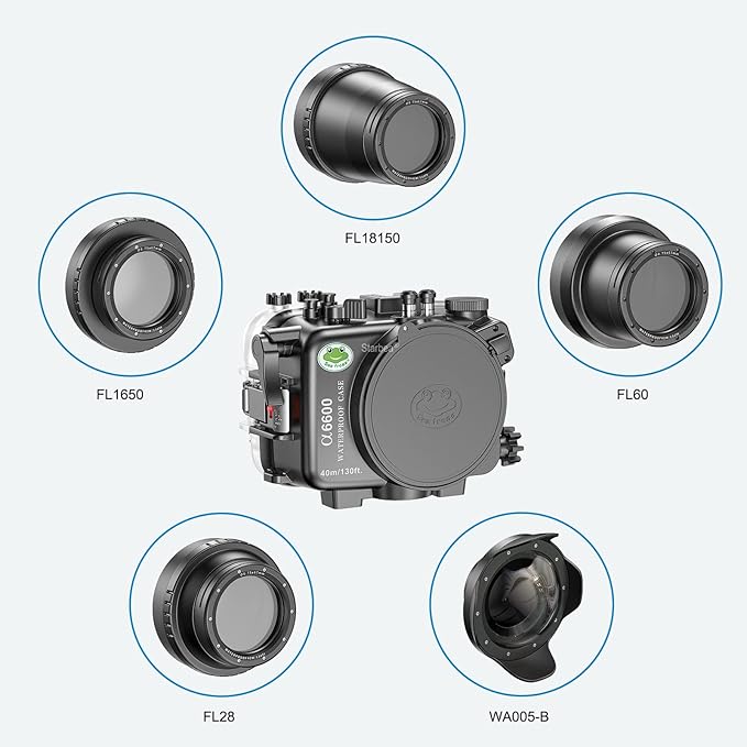 Sea frogs Underwater Camera Case Compatible with Sony A6600 10-18MM IPX8 40m/130ft Maximum Diving Depth Waterproof Camera Housing for Diving, Surfing, Rowing, Skiing