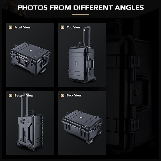 Lykus HC-5220 Waterproof Hard Case with Wheels and Customizable Foam, Interior Size 20.5x14.2x9.7 inch, Suitable for camera, lens, drone, mic, flashlight, projector, electronics, tools, and more