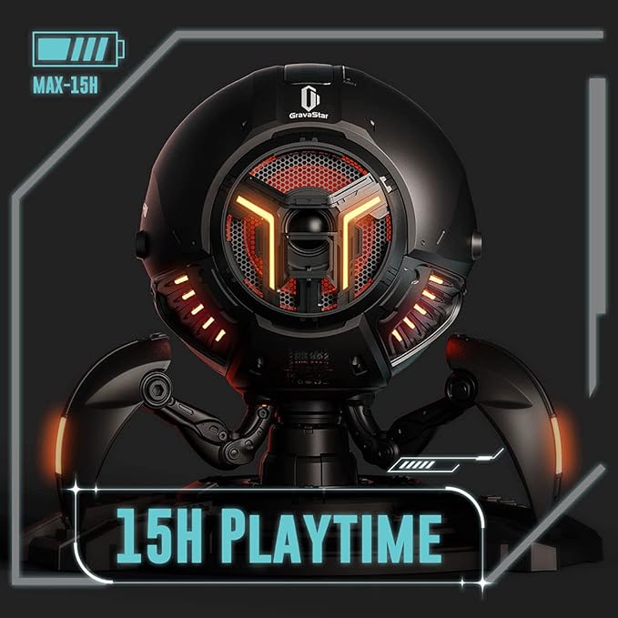 - 【BUILT-IN LIGHT SHOW】Get the party started with GravaStar’s 6 dynamic RGB lights. Set it to a single color, automatically change the colors gradually, or even light up your room to the beat of your music. Mars Pro sets the mood of your room.