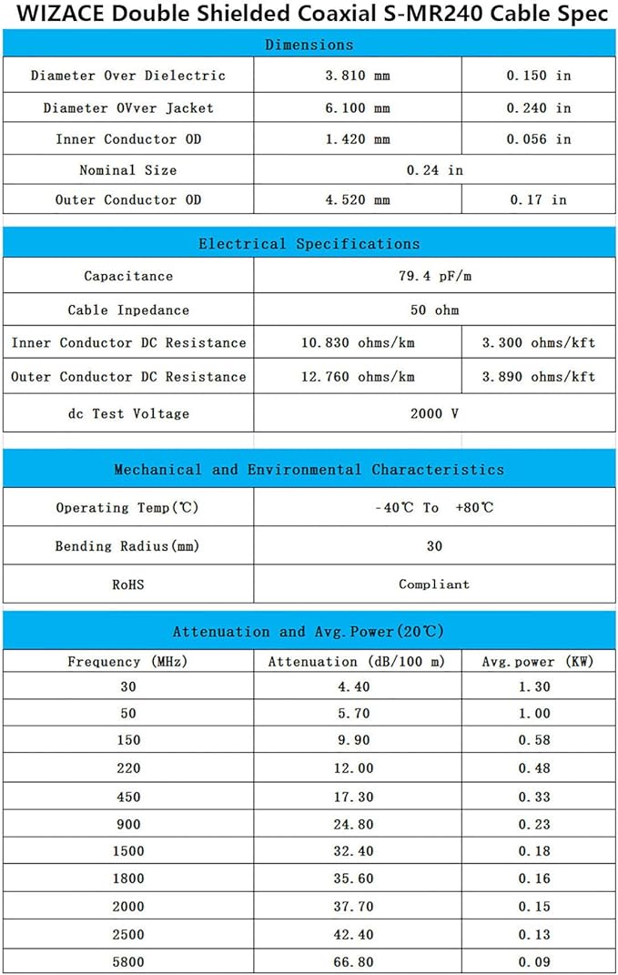 - ✔3 feet(1 Meters) Low-Loss S-LMR240 Size Coax, Impedance: 50 ohm. The S-LMR240 material made by solid copper core and gold plated signal pins,which have high signal and quality.