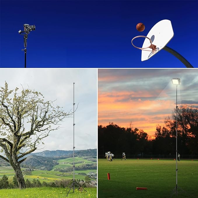 - 【Super Tall】RAUBAY Sports Tripod highs up to 16ft / 192in, it's tall enough for you to record all the sports playground for wedding, sports, soccer, football, hockey, media studio, photography studio.