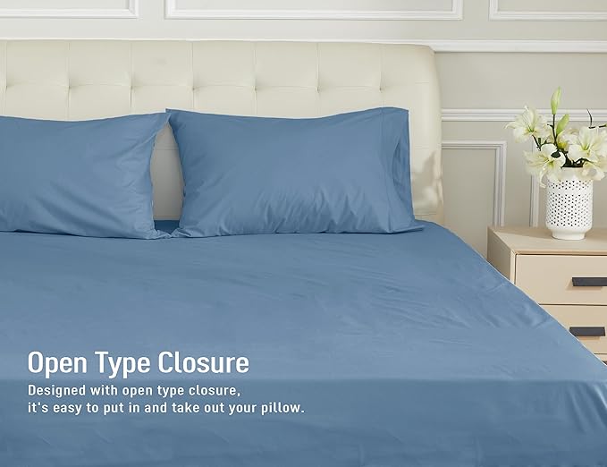 Sunflower King Pillowcases Set of 2, 100% Cotton King Pillow Cases 2, 20×40 inches Copen Blue, Soft and Breathable