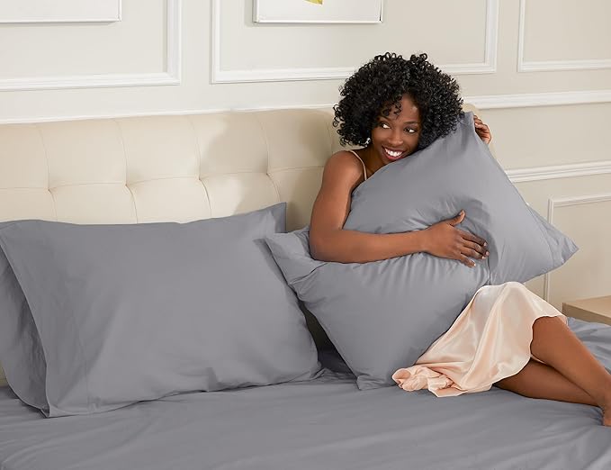 Sunflower King Pillowcases Set of 2, 100% Cotton King Pillow Cases 2, 20×40 inches Frost Gray, Soft and Breathable