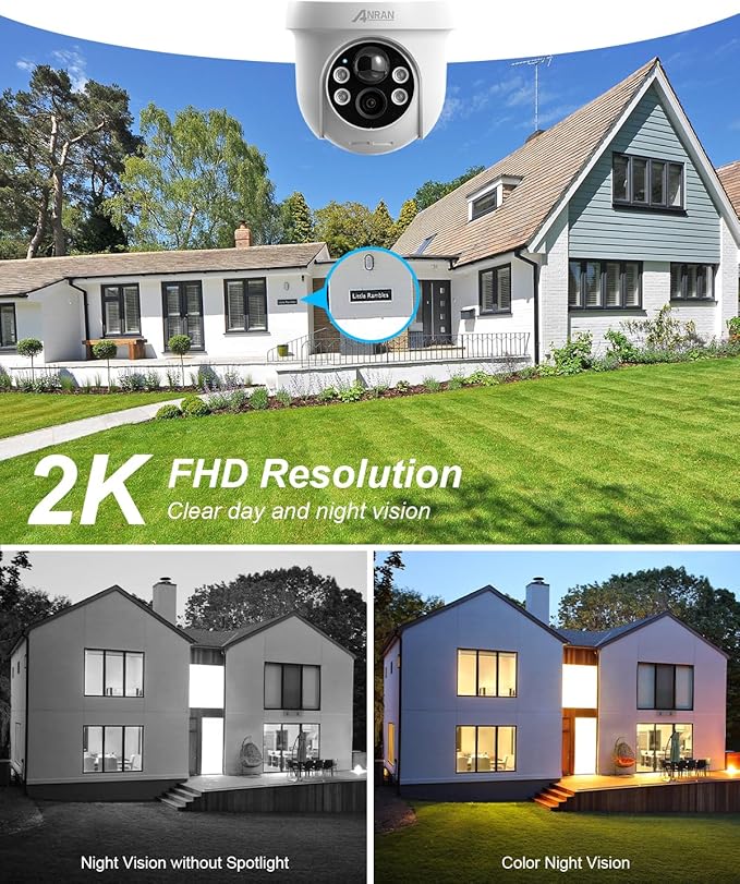 - 【2K Ultra HD Images & 360° Coverage】ANRAN solar outdoor security cameras with 2K resolution, providing you with ultra-sharp live video. With a swivel range of 355° horizontally and 90° tilted, the home security camera takes panoramic shots, ensuring no blind spots and providing you with 360° of protection.