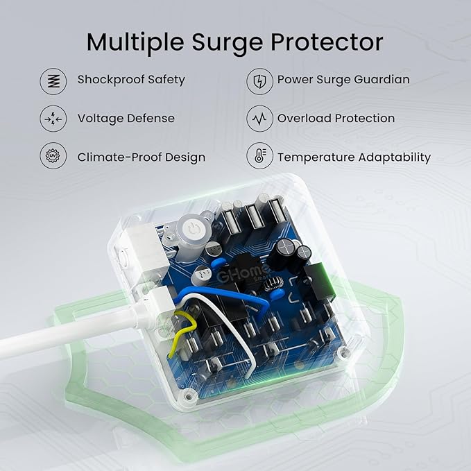 GHome Smart Power Strip with 3 USB Ports & 3 Smart Outlets Plugs That Work with Alexa & Google Home, WiFi Surge Protector, Flat Plug for Home Office Travel, 10A, White