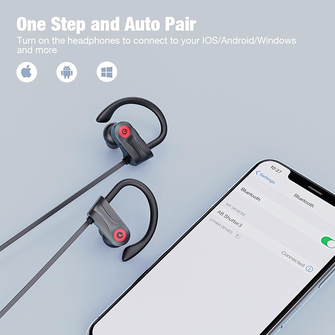 - One Step And Auto Pair: Running headphones equipped with the latest bluetooth 5.3 technology, easy to connect to your electronic device such as IOS/Android/Windows equipment, and 1 SECOND auto pair to your device next time. (Note: smart watch connectivity is not supported)