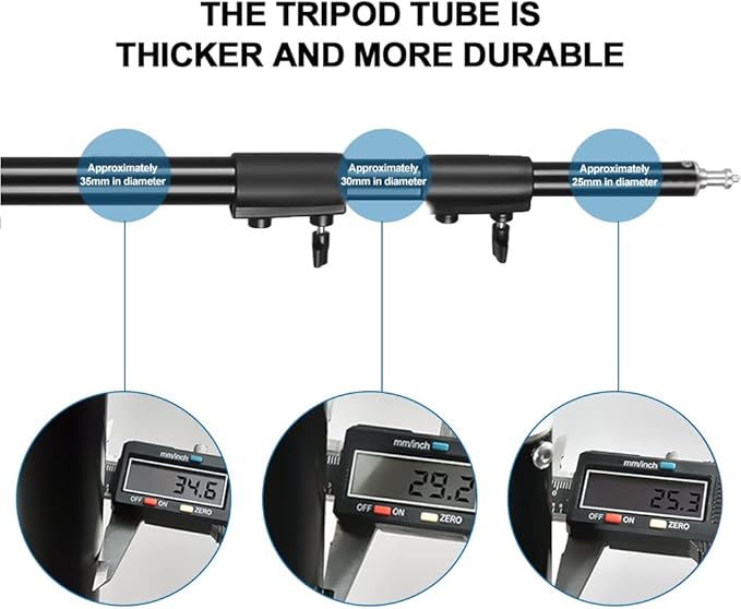 - 【Rugged and Durable Tripod】 This light tripod stand is 9.18 feet high and is made of aluminum alloy, which has excellent strength and is suitable for heavy-duty work.