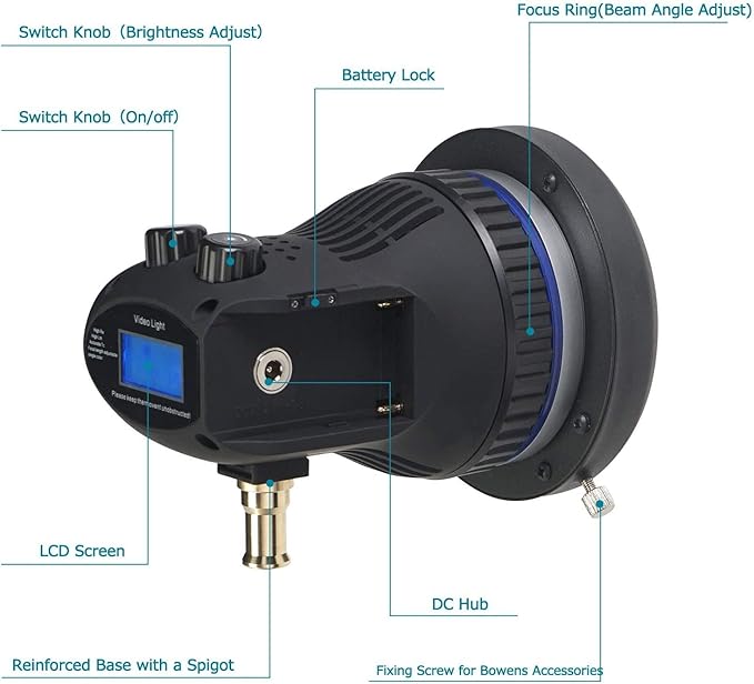 - đ„ăPORTABLE, POWERFUL, FUNCTIONALă - Small size and Lightweight, easy to carry and install; 80w high power, adjustable brightness, meet your needs of directing and controlling lightness. COB light source, high brightness, low light decay, long-lasting brightness. Itâs a great helper for you to shoot outdoor travel, live broadcast, micro film, etc. And itâs a essential device for indoor studio shooting .