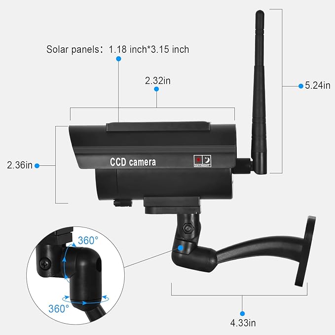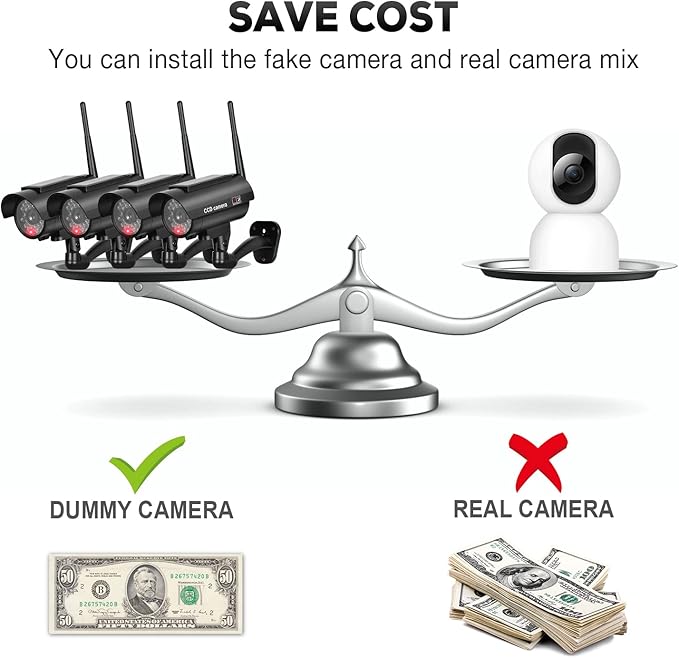- Real Looking: Realistic antenna and flashing red lights make it look like a real camera, effectively deterring thieves. Switching with real cameras can save a lot on your security costs.