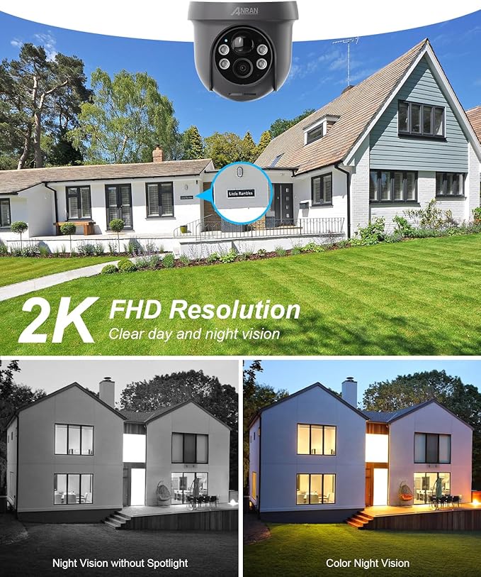 - 【PIR Human Detection & Multiple Alerts】Even at night, the ANRAN wireless security camera can still provide you full-on home protection. When PIR motion detection sensor detects unexpected visitors, the solar security camera with floodlights and siren will automatically activate and send you an instant notification via the 2.4G network.