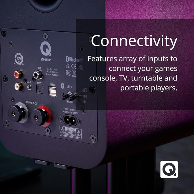 Q Acoustics M20 Bluetooth Speakers HD Wireless Speakers Music System White - Tweeter 0.9", Mid Bass/Driver 4.9", Freq. Response 55Hz–22kHz, Crossover Freq. 2.4kHz - Powered