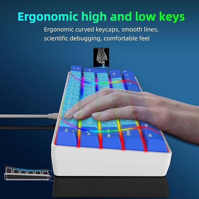 - 【Ergonomic Design and Mechanical Feel】The 60 gaming keyboard key height is designed according to ergonomics, and it is not easy to fatigue after long-term use. Using advanced imitation mechanical technology, one of the attractive features is the mechanical feeling.