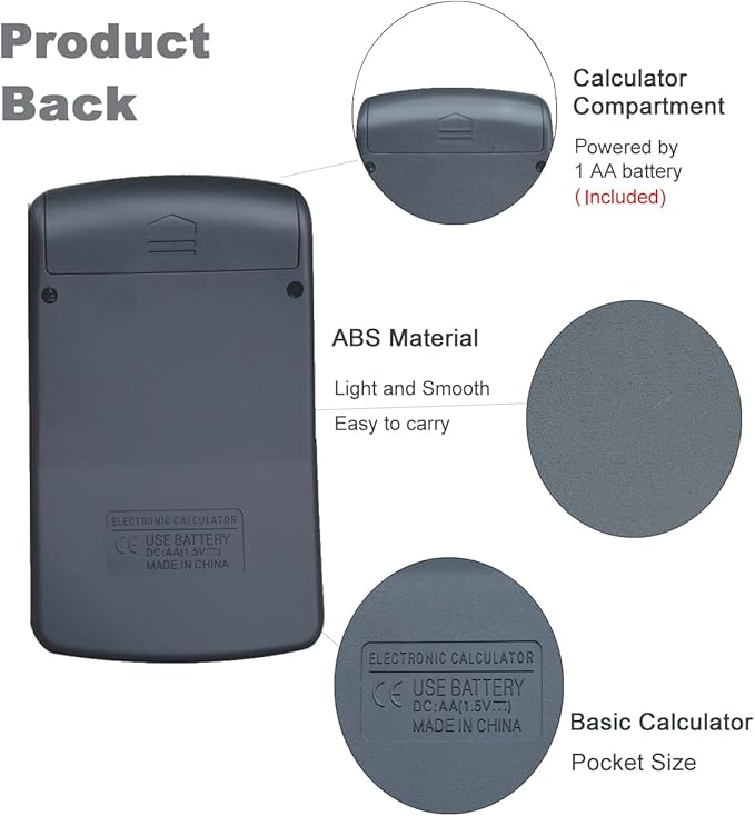 - Dual Powered Calculator : Solar power (works only when it is in bright light) and battery power (1 AA battery for each calculator). If the solar strip is blocked, the numbers in the display will disappear. Please put the battery in the calculator compartment before use
