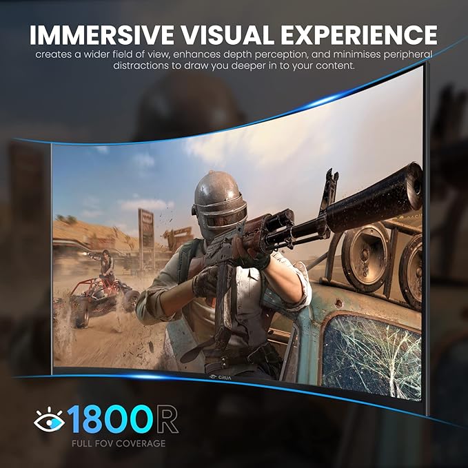 - 1800R Curvature: Specialized gaming monitor 1800R curvature lets you see more content without excessive head movement providing an immersive picture.The stylish design of ultra-thin with three sides and a stable V-shaped base.A wide range of -5°~15°(±2°) tilt adjustment allows you to maximize your viewing comfort