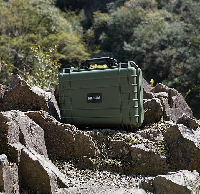 MEIJIA Portable All Weather Waterproof Protective Case,Hard Case,Camera Case With Customized Fit Foam,Fit Use of Drones,Camera,Equipments,Pistols,13.35 x11.63x5.98inches (Green)