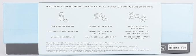 - QUICK & EASY SETUP: Set up in minutes on WiFi and instantly add photos and videos from your phone using the free Aura app, available on iOS and Android.
