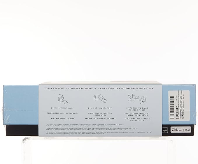 - QUICK & EASY SETUP: Set up in minutes on WiFi and instantly add photos and videos from your phone using the free Aura app. Works with Apple and Android devices.