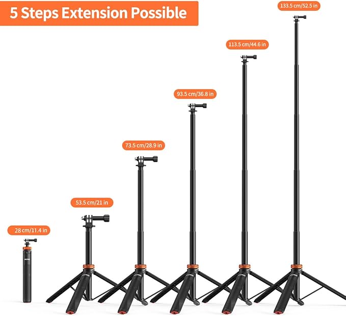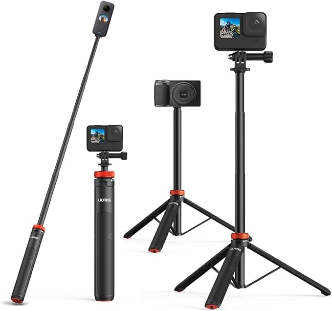 UURig Telescopic Selfie Stick Long with Tripod, Waterproof Hand Grip, for Insta360 GoPro Hero 10 9 8 7 6 5 4 3 2, Fusion, Max, Session, AKASO, SJCAM, DJI OSMO GoPro