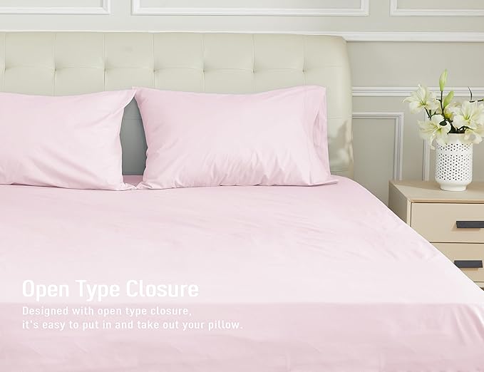 Sunflower King Pillowcases Set of 2, 100% Cotton King Pillow Cases 2, 20×40 inches Light Pink, Soft and Breathable