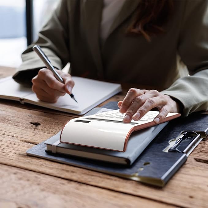 - Elegant and Slim Design: The rose gold office supplies and accessories desktop calculator has a sleek and stylish design, good-sized buttons, Large 10-digit LCD display, Pretty big one but still very light weight. Your calculation process will be faster and smoother with this calculator’s responsive buttons.