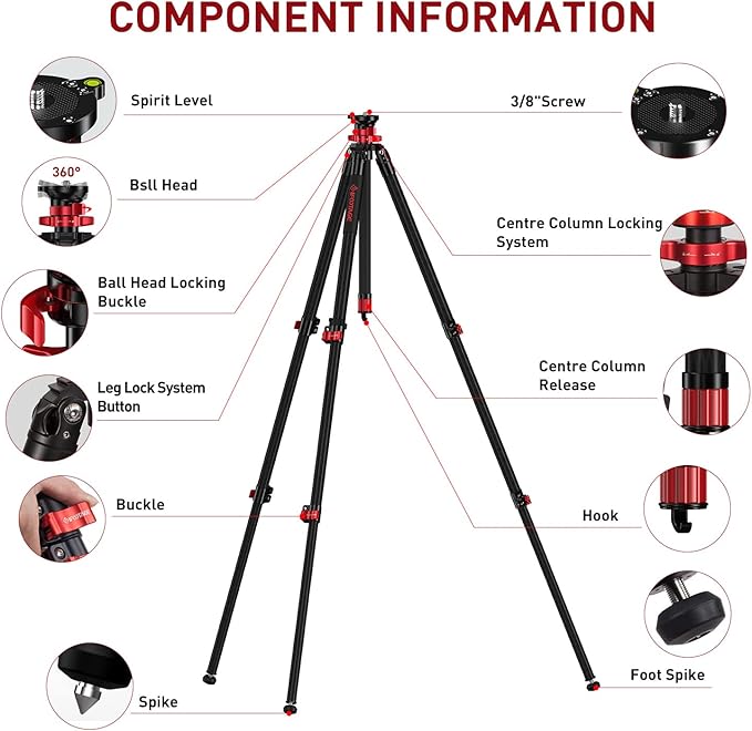 - 【Convenient Foot Pads & Spikes】Rotate each rubber footpad to reveal the foot spike and turn in opposite direction to enclose the foot spike. This tripod allows you to use the tripod in a variety of locations and conditions.