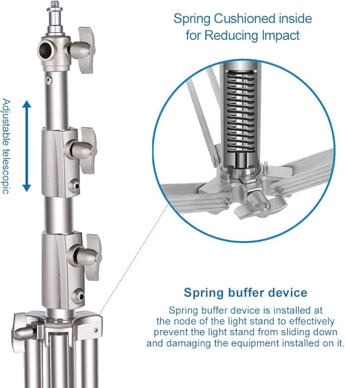 - 【Durable Stainless Steel Light Stand】 The stainless steel material is corrosion-resistant and durable, which can protect the light tripod stand from air pollution and salt exposure.