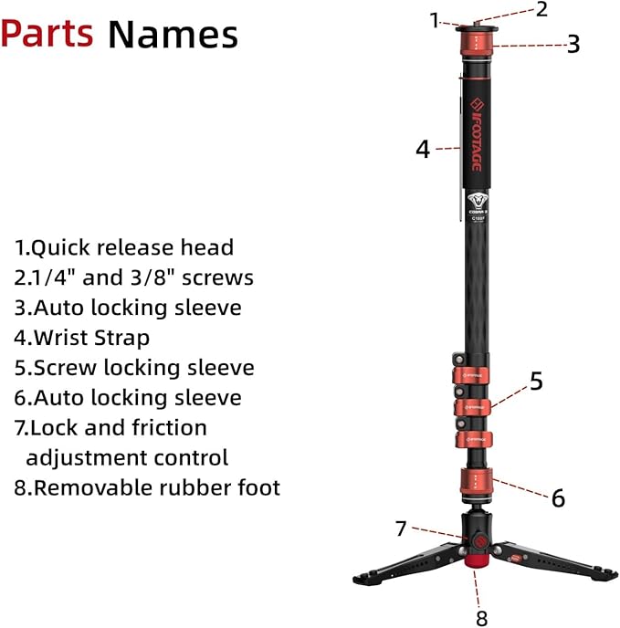- 【High Quality Material】This is an carbon monopod, all metal, with a load capacity of 8kg, the surface is specially treated, durable and waterproof.