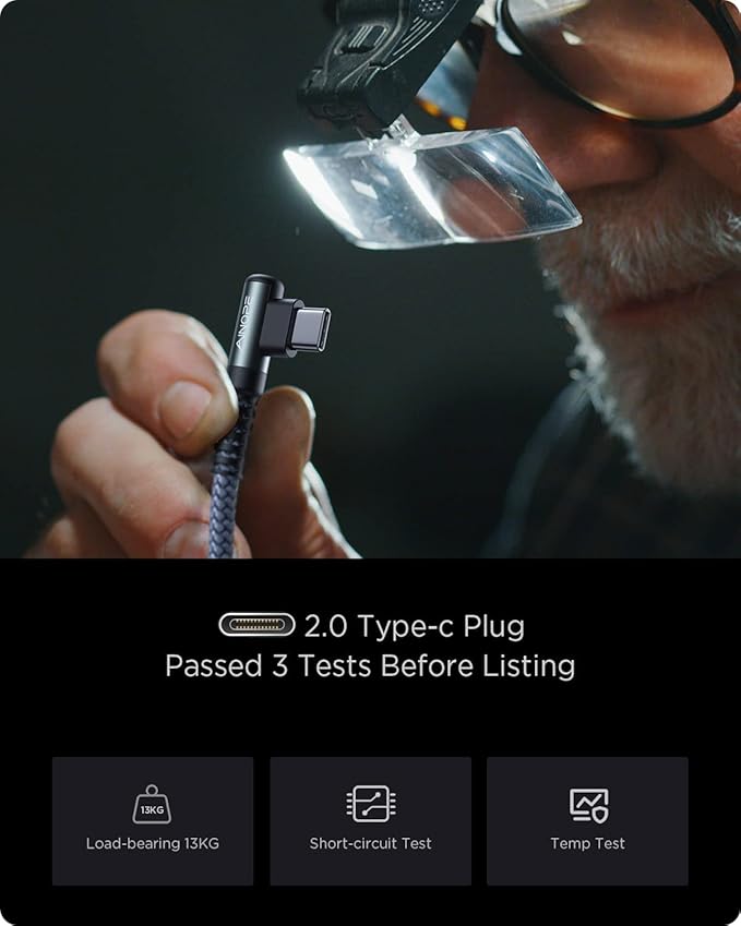 - AMAZING DURABILITY: Reinforced 90 degree USB C cable with special SR joint, Lasts 30x longer than ordinary cables-proven in a laboratory environment to withstand 40000 bends. It built-in laser welding technology, which ensure the metal part won't break. One of the toughest cables ever created, with tensile strength capable of withstanding 175 lbs