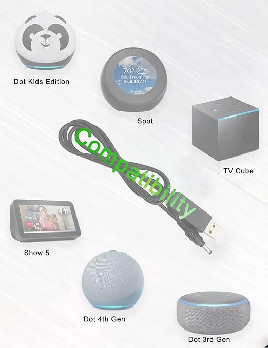 - Replacement for Alexa 15W power adapter, echo dot 3rd gen/dot 4th gen/dot 5th gen, and Dot Kids Edition speaker; XXX NOT for Echo 4th gen, Echo Show8 2nd Gen/3rd Gen,echo Show 5 3rd Gen, Echo Show 10/15 (please see product compatible picture before buying) XXX