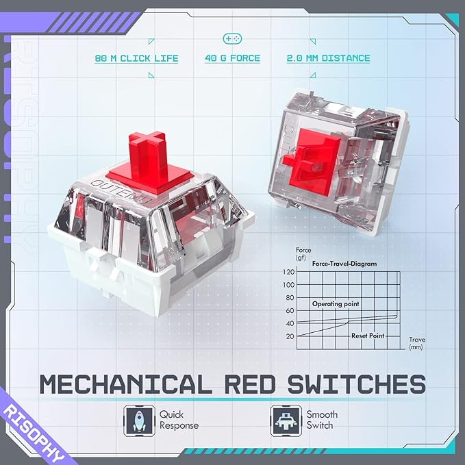 - ใ๐๐๐๐ก๐๐ง๐ข๐๐๐ฅ ๐๐๐ ๐๐ฐ๐ข๐ญ๐๐กใLinear and smoother, slight key sound has no paragraph sense with minimal resistance, but fast action without a tactile bump feel which makes it easier to tap. Smooth quiet click experience is perfect for office typing or playing games, high-intensity game battles are easy and stress-free.